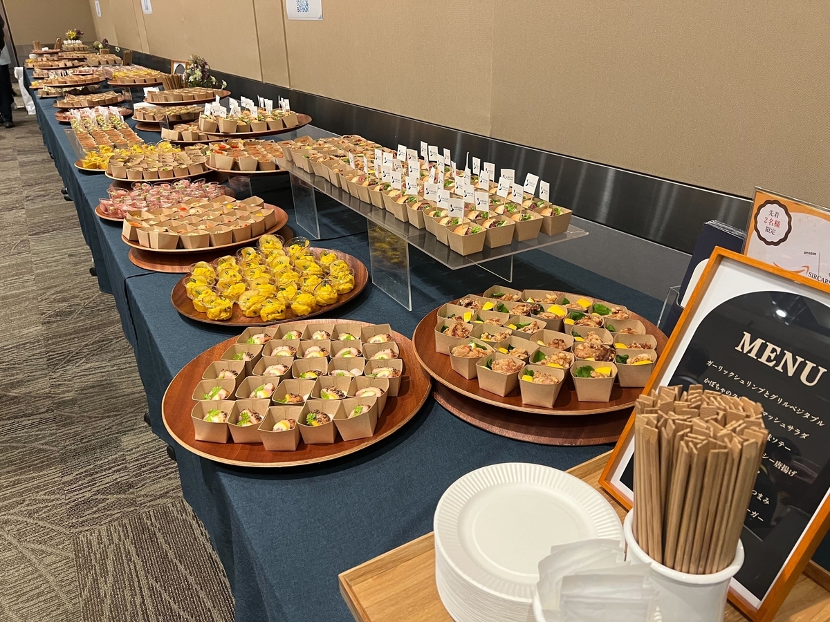 懇親会ではフィンガーフードやドリンクが提供され、リラックスした雰囲気の中で多くの参加者が集まりました。会場が満席になるほどの盛況ぶりで、軽食を楽しみながら新たなつながりが生まれる貴重な機会となりました!