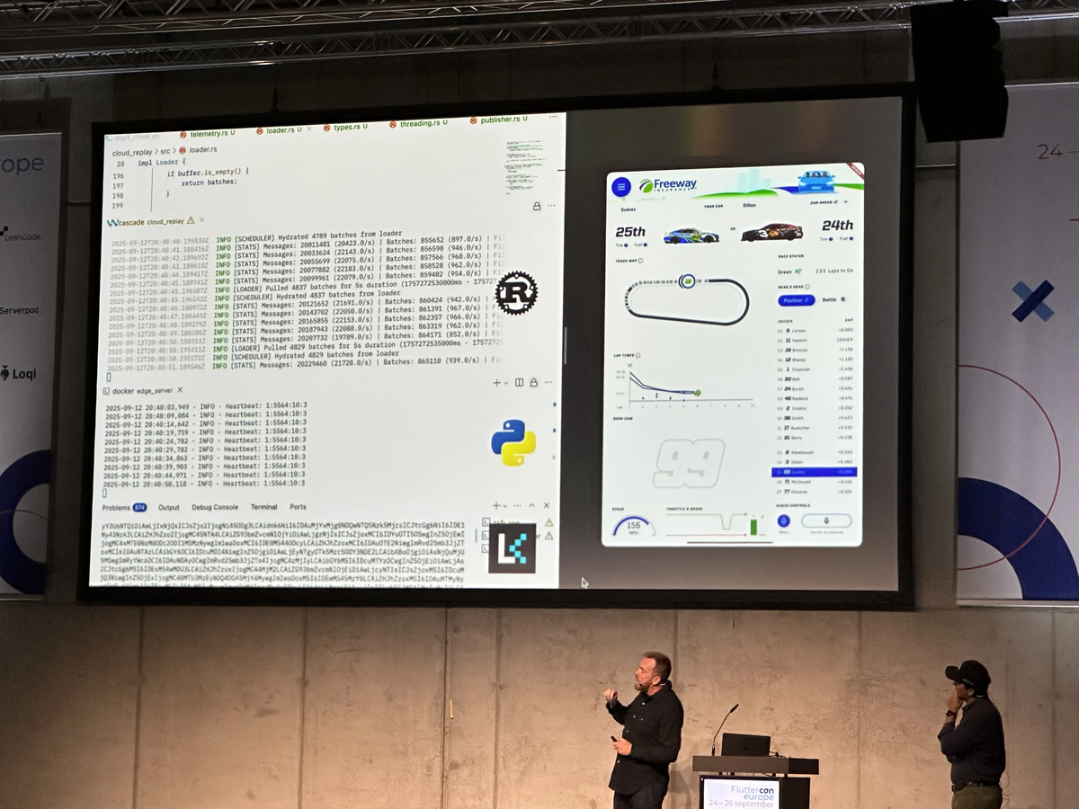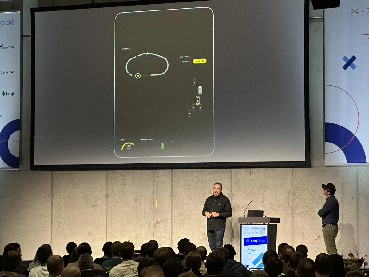 データ伝送には LiveKit を利用し、実際の表示部分には Flutter の Flame エンジン を採用。Flame は非常に高いパフォーマンスを誇るため、このように大量に流れ込むデータをリアルタイムに可視化するケースにおいて最適だったそうです。