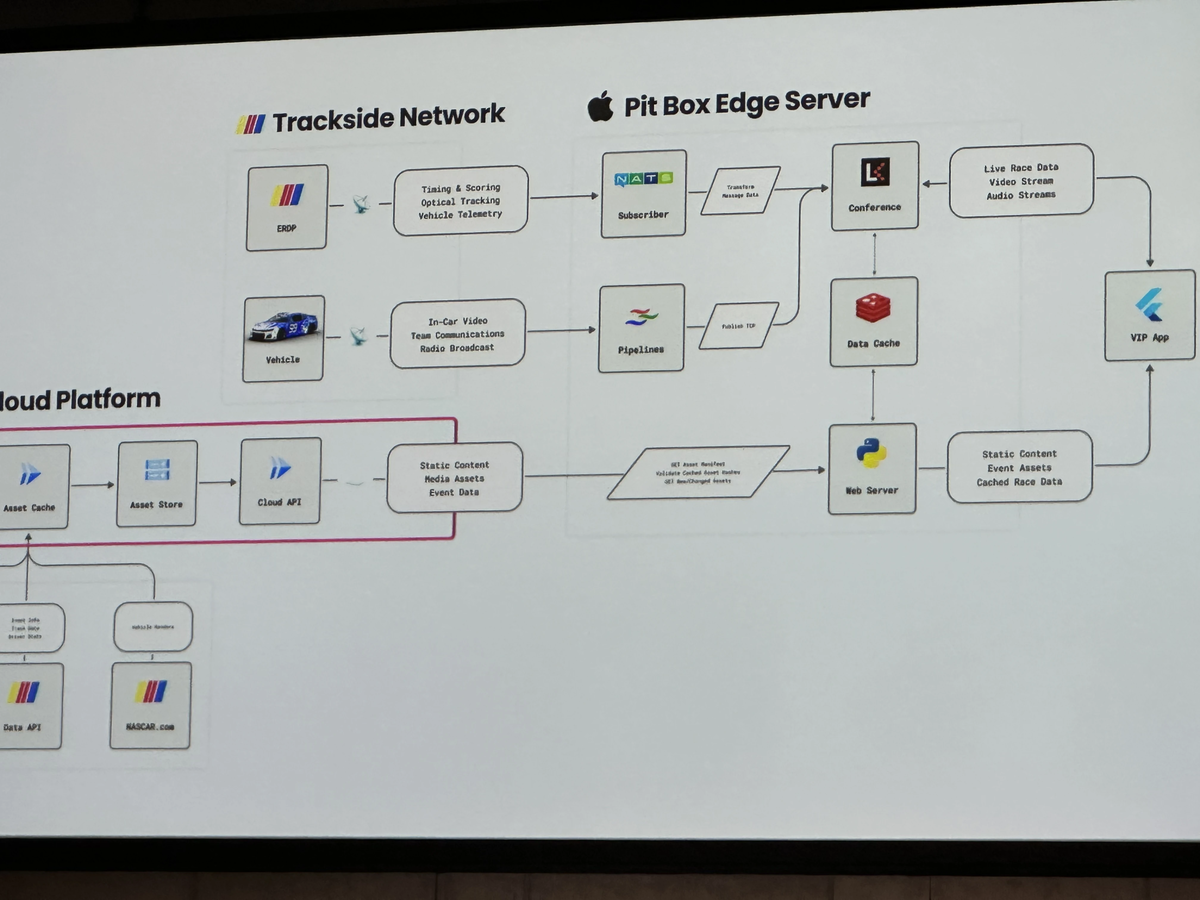 さらに彼らは今回の技術スタックについても紹介していました。というのも、ドライバーから送られてくるデータは 毎秒1000件以上のメッセージ という非常にハードな要件だったからです。