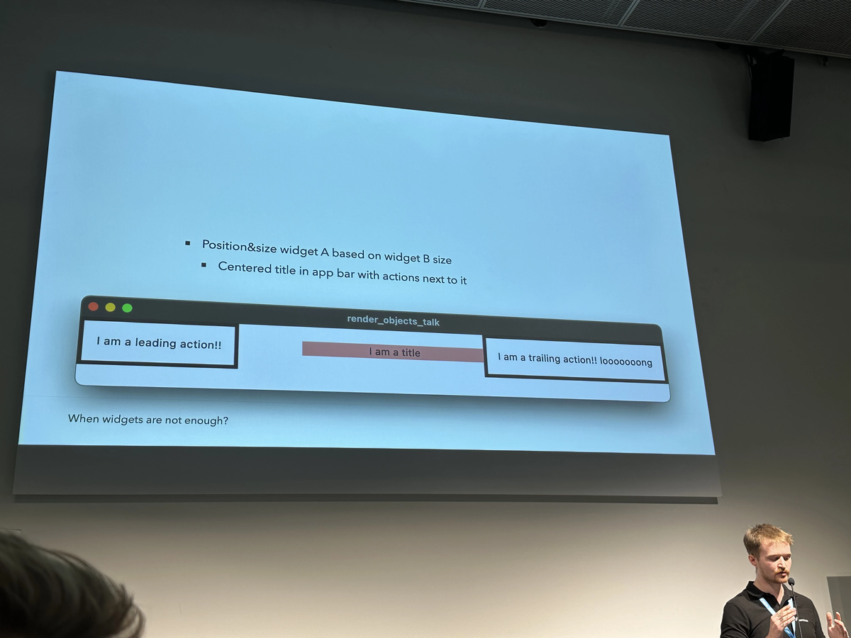 - あるウィジェットのサイズを別のウィジェットに依存させたいとき→ 典型例が AppBar。アクションボタンのサイズに合わせてタイトルを中央に配置したいケースは、なんと 90% のユースケースを占めるそうです。