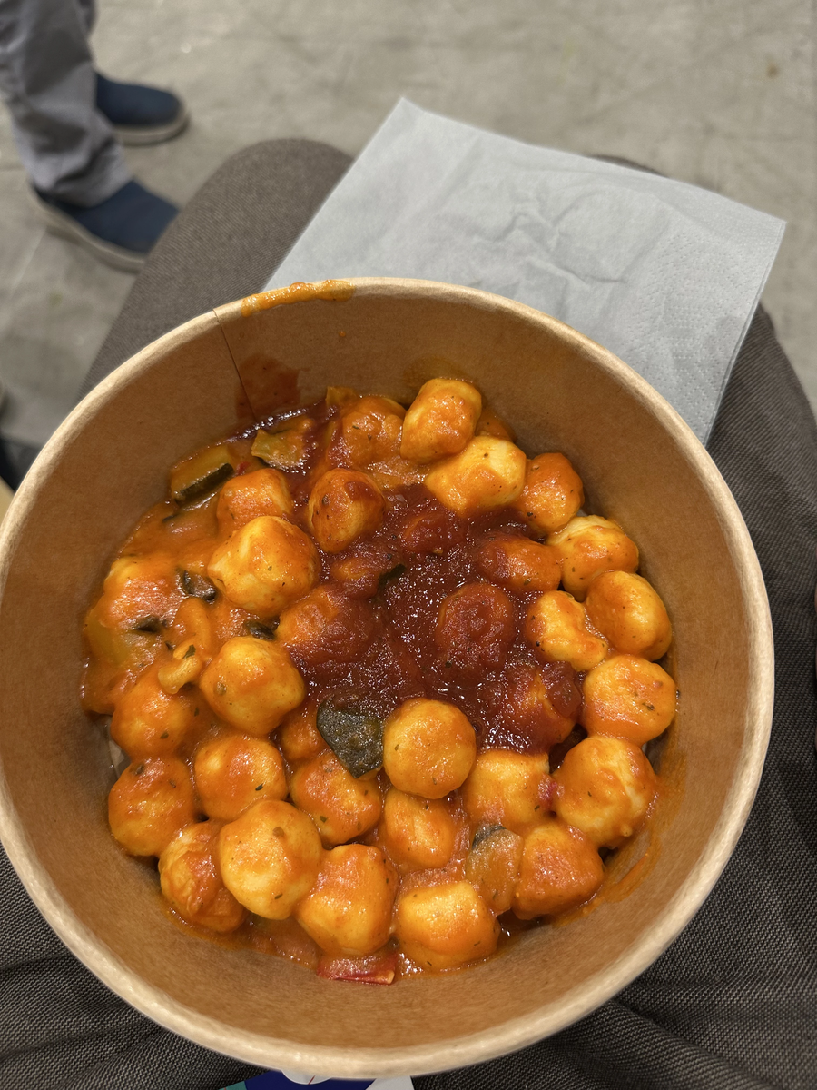 お昼ご飯はニョッキを食べました。ただ、日本で食べたニョッキと全然違っていてびっくり。こちらのはパスタというより、かなりジャガイモ感が強い味で、ちょっと不思議な感じでした。ドイツで最後にニョッキを食べたのがいつだったかも思い出せないくらい久しぶりですが、正直言うと日本の方が好みかもしれません。