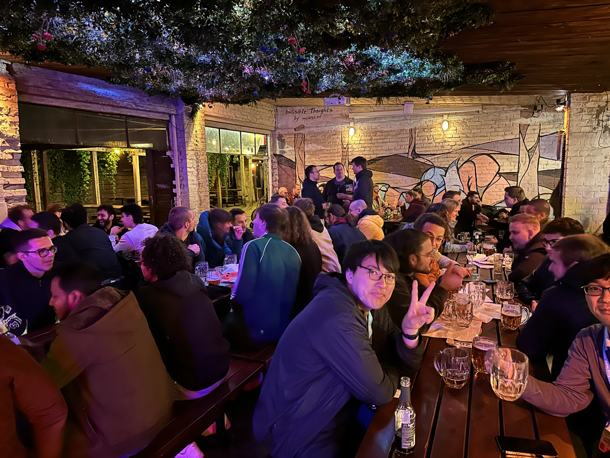 3日目は少し早めに終了し、みんな一度ホテルに戻って休憩してから、Widgetbook 主催のアフターパーティーへ。 毎年恒例で、Widgetbook がビアガーデンを貸し切って最初の一杯をご馳走してくれます。🍻 雰囲気も最高で、さらに横にはテクノクラブもあって盛り上がりは抜群。