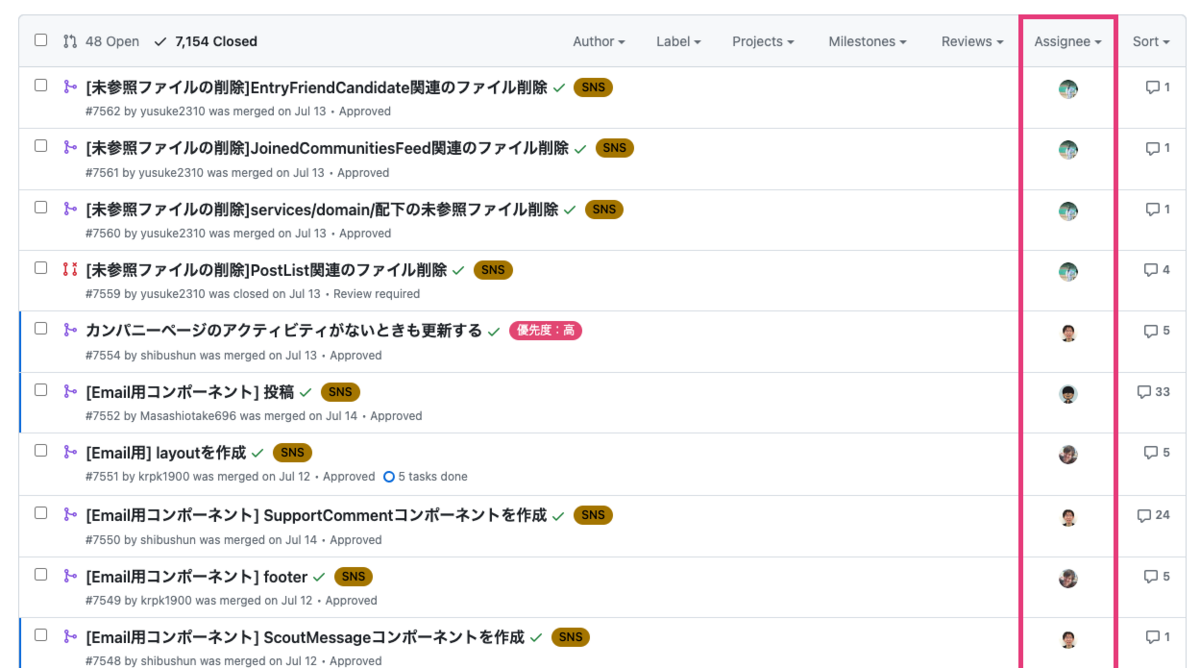 実装者の記憶を元にしてAssigneeで検索したときに、Assigneeの選択漏れが原因でPRがヒットしない問題もなくなりました。