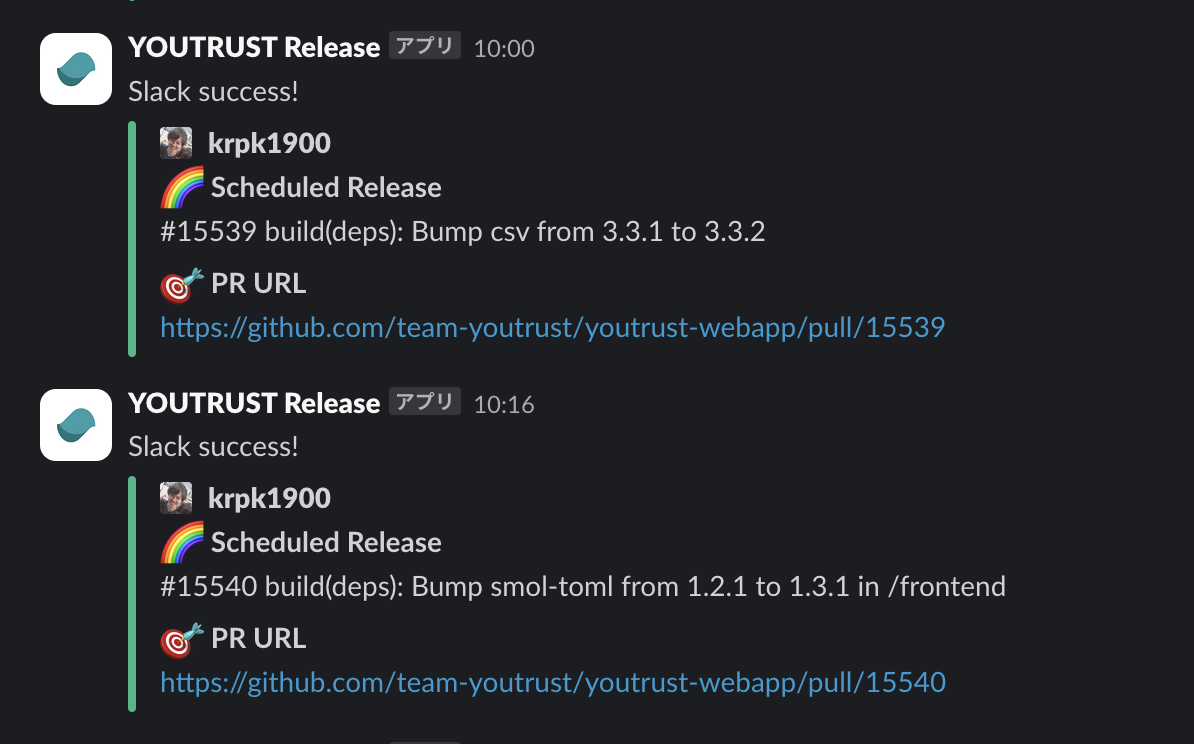 私はYOUTRUSTで使用しているライブラリやプログラミング言語のアップグレードを率先して進めており、ちょうど年の節目だったので数えてみたところ、2024年の一年間で500回のバージョンアップを行っていました。